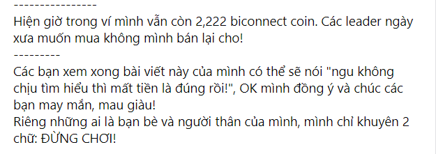 Nguyễn Văn Chung nói thêm tháng đầu tiên trôi qua trong hạnh phúc, ngày nào anh cũng thấy tiền của mình "nhảy số". Tuy nhiên, tháng thứ 2 xảy ra biến động và đến tháng thứ 3 thì sập web, anh mất trắng toàn bộ số tiền đầu tư của mình. Tác giả Cào Cào Lá Tre cho biết, sự việc xảy ra cũng chỉ biết trách mình vì quá ngây thơ, sau đó anh đưa ra 5 bài học lớn và thẳng thắn khuyên mọi người: Đừng chơi!
