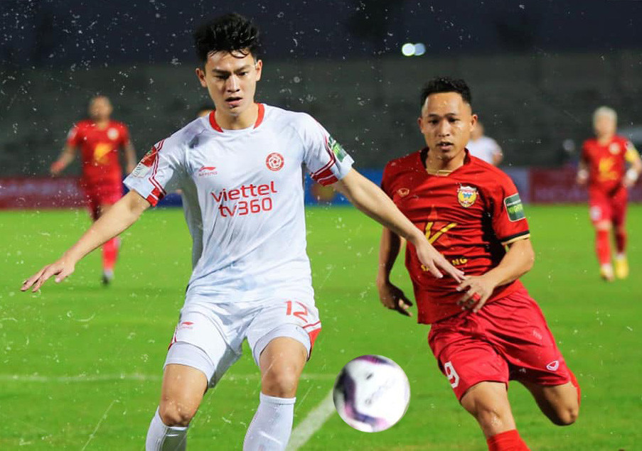 Và cướp bóng từ khu trung tuyến cũng là cách tốt nhất để Hà Tĩnh tung đòn phản công. Cách đá này của họ đã khá hiệu quả trong thời gian đầu. Nửa đầu hiệp một, họ đã có hai pha hãm thành khiến hàng thủ Viettel chật vật.