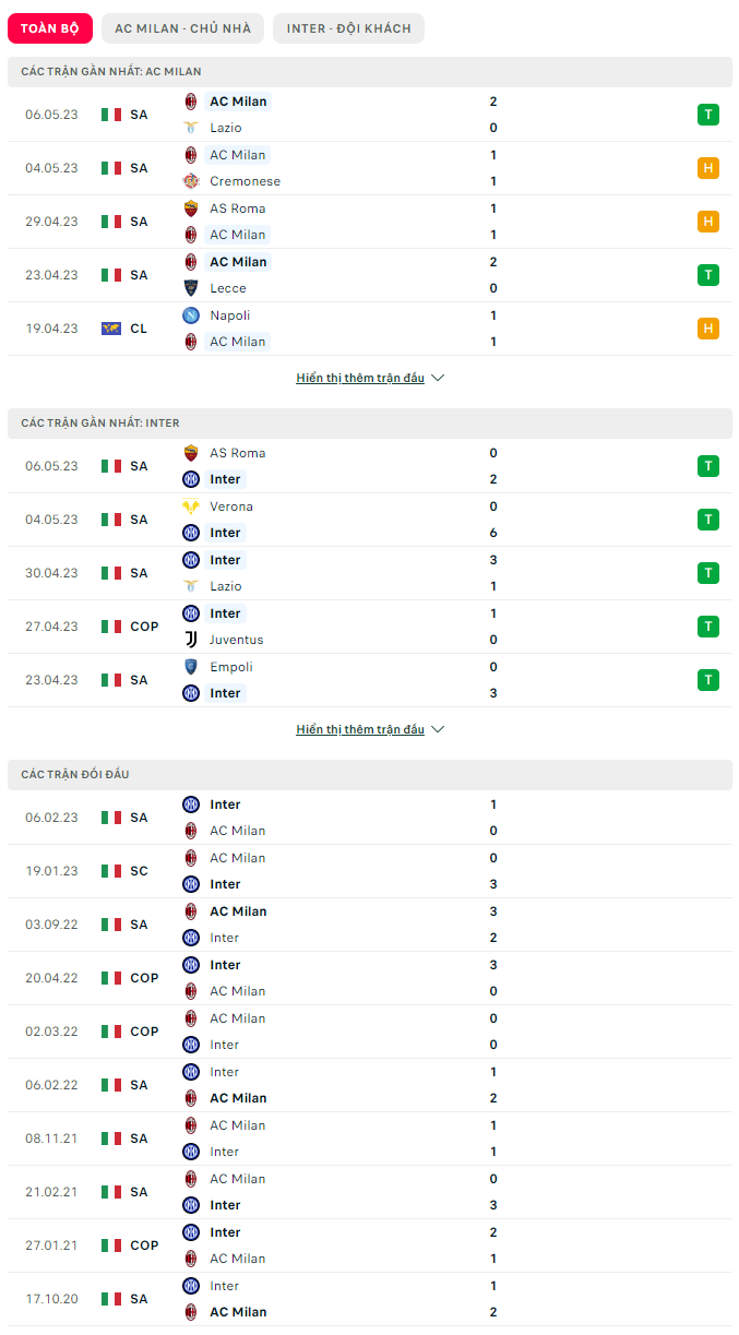 Phong độ, lịch sử đối đầu AC Milan vs Inter Milan