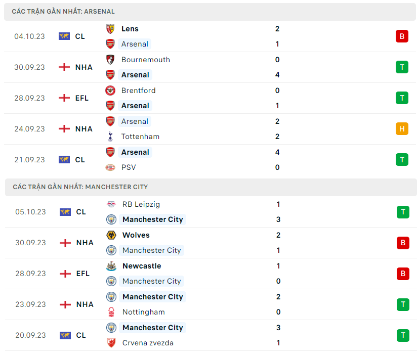 Lịch sử đối đầu, phong độ Arsenal vs Man City