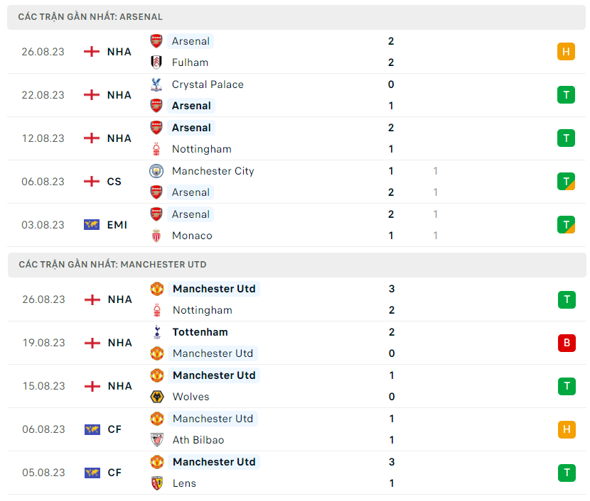 Phong độ, lịch sử đối đầu Arsenal vs MU