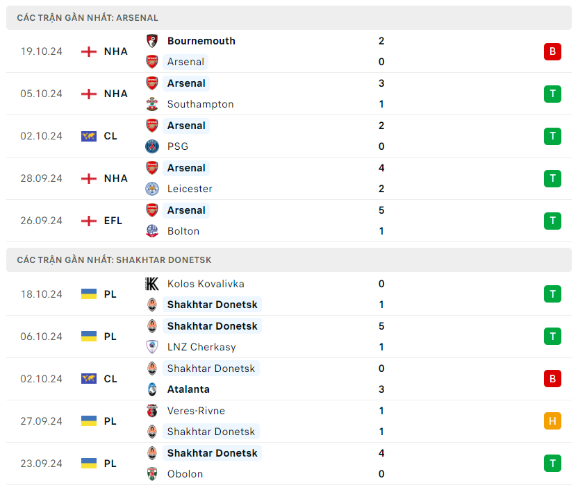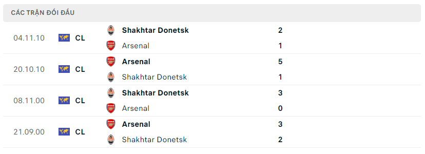 Lịch sử đối đầu, phong độ Arsenal vs Shakhtar Donetsk