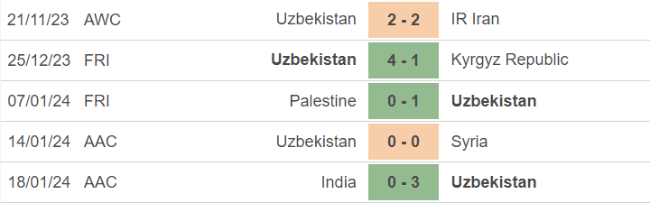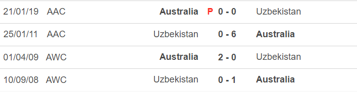 Theo thống kê, hai đội đã đụng độ 4 lần trước đây trong lịch sử thi đấu và cả 4 trận đều thuộc khuôn khổ Asian Cup. Australia áp đảo hoàn toàn với cả 4 chiến thắng. Trong đó, có chiến thắng 6-0 trước đối thủ vào năm 2011. Lần gần nhất hai đội gặp nhau là tại vòng 16 đội của Asian Cup 2019. Tại đó, Australia đã vượt qua Uzbekistan trên loạt sút luân lưu.