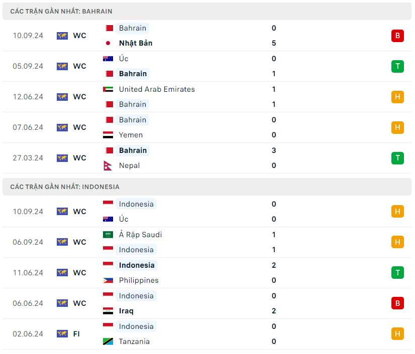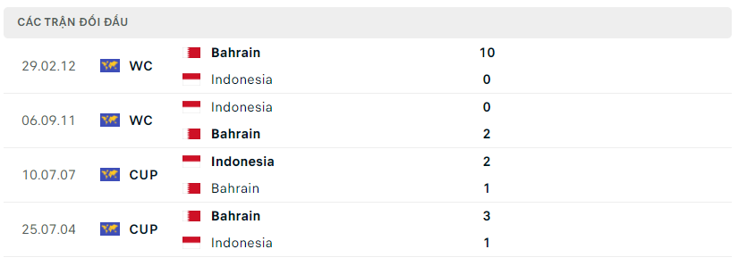 Lịch sử đối đầu, phong độ Bahrain vs Indonesia
