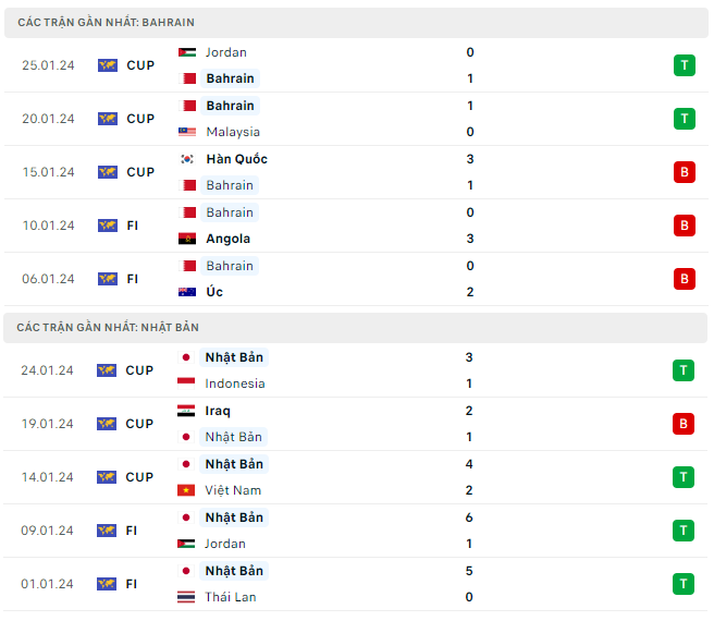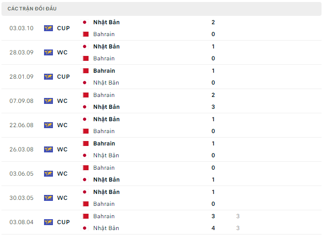 Phong độ, lịch sử đối đầu Bahrain vs Nhật Bản