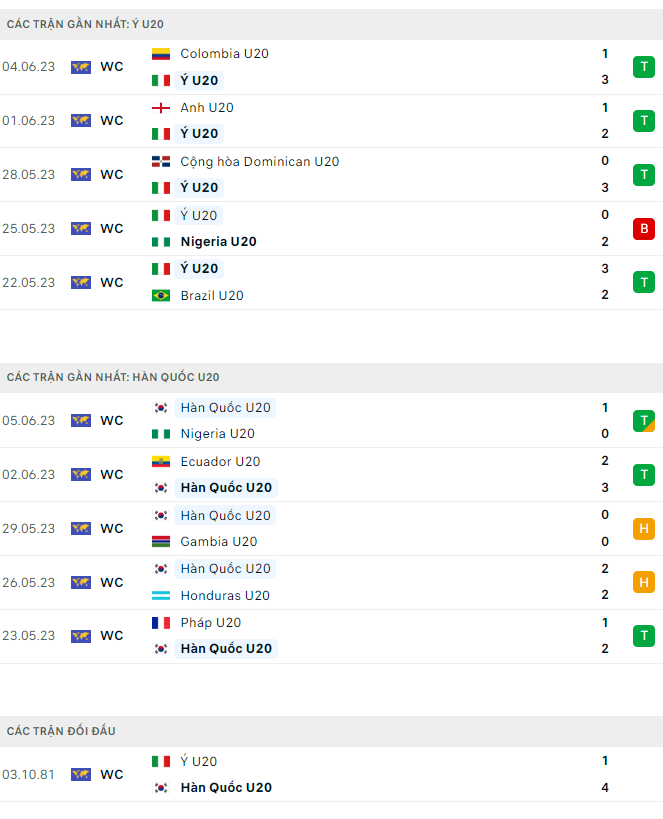 Phong độ, lịch sử đối đầu U20 Italia vs U20 Hàn Quốc