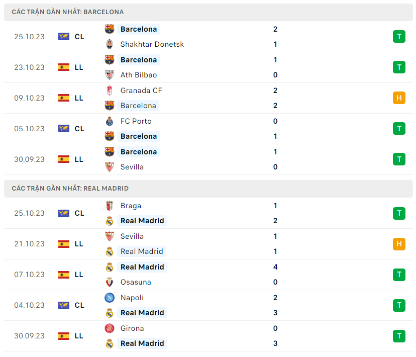 Lịch sử đối đầu, phong độ Barcelona vs Real Madrid