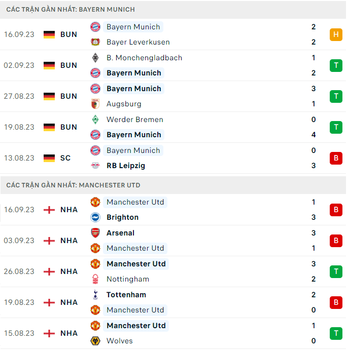 Phong độ, lịch sử đối đầu Bayern Munich vs MU
