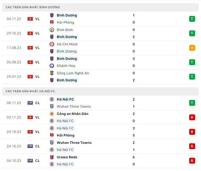 Phong độ, lịch sử đối đầu Bình Dương vs Hà Nội