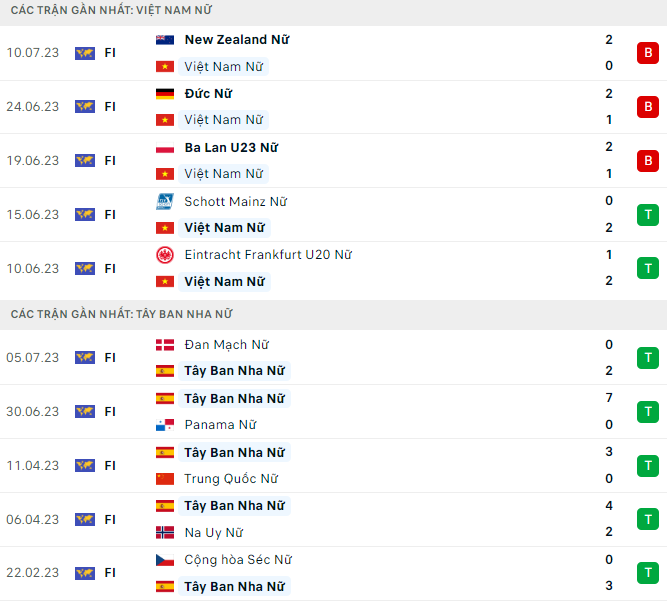 Phong độ, lịch sử đối đầu bóng đá nữ Việt Nam vs Tây Ban Nha
