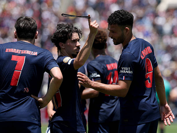 PSG (4-3-3): Donnarumma; Hakimi, Marquinhos, Pacho, Mendes; Neves, Vitinha, Ruiz; Kvaratskhelia, Ramos, Doue.