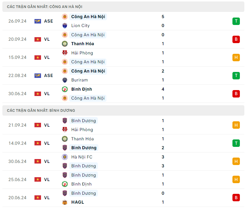 Lịch sử đối đầu, phong độ CLB Công an Hà Nội vs Becamex Bình Dương
