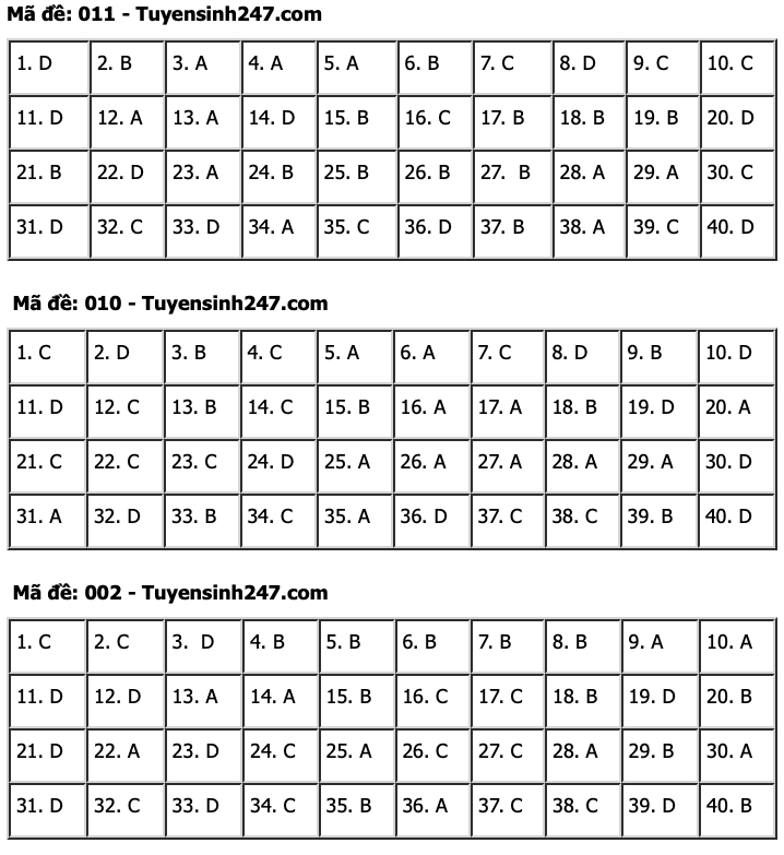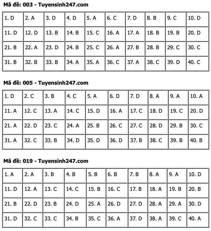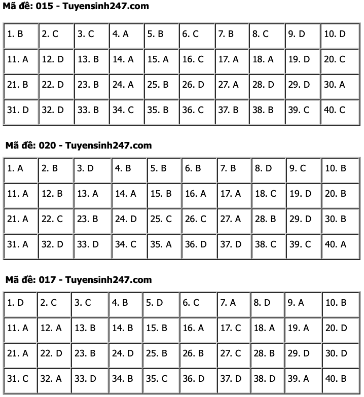 | Đáp án tham khảo môn tiếng Anh. |