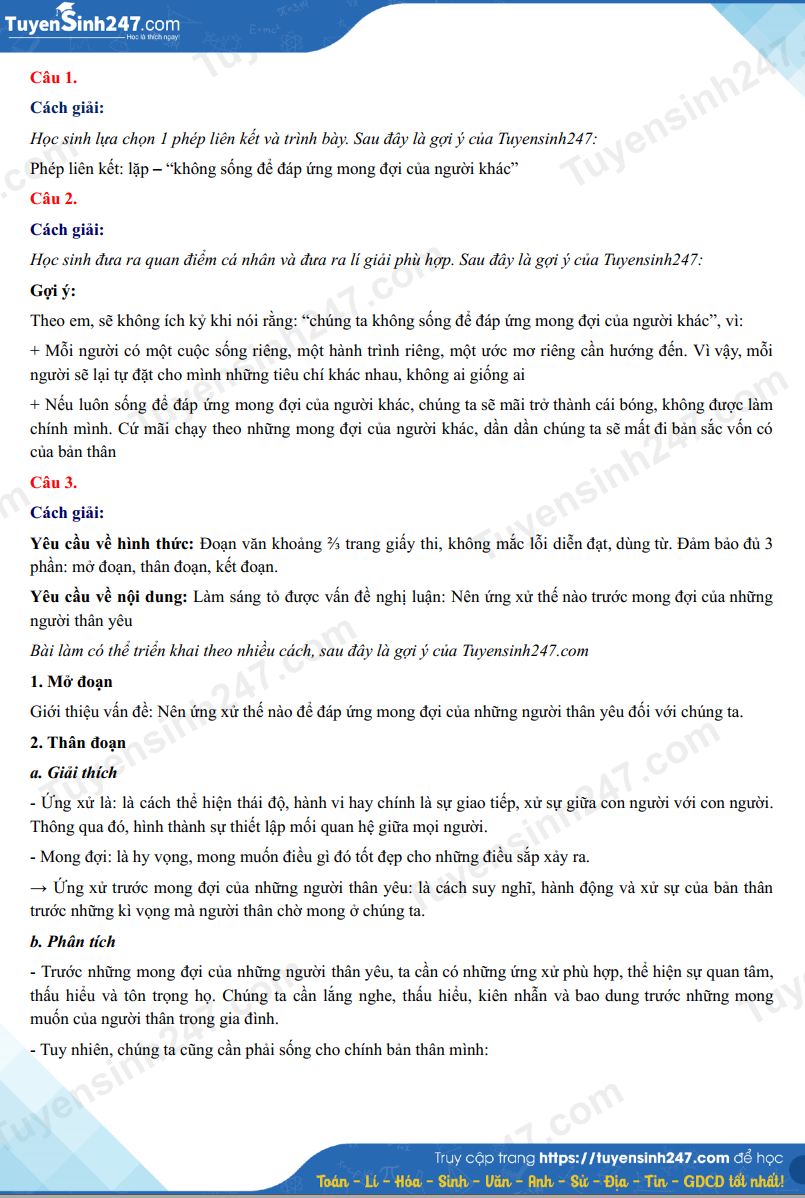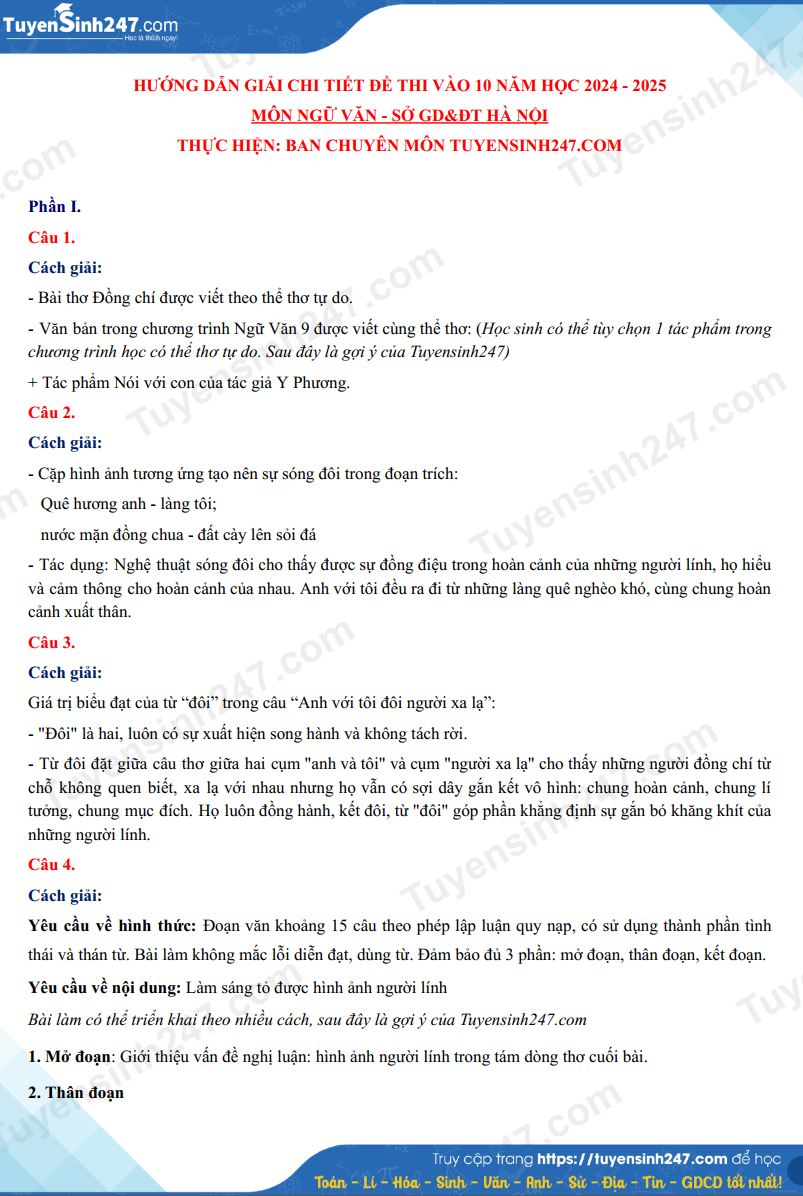| Gợi ý giải đề của Tuyensinh247.com. |