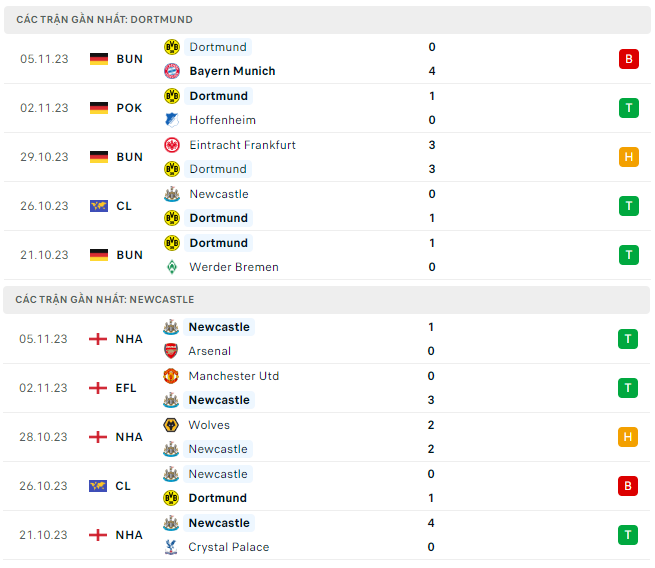 Phong độ, lịch sử đối đầu Dortmund vs Newcastle