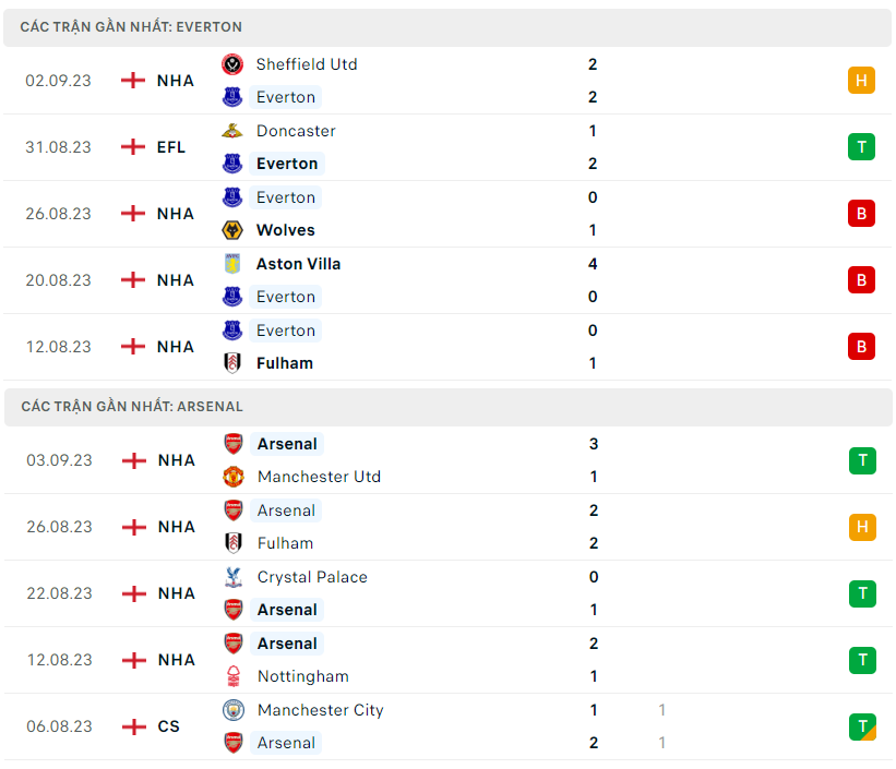 Phong độ, lịch sử đối đầu Everton vs Arsenal