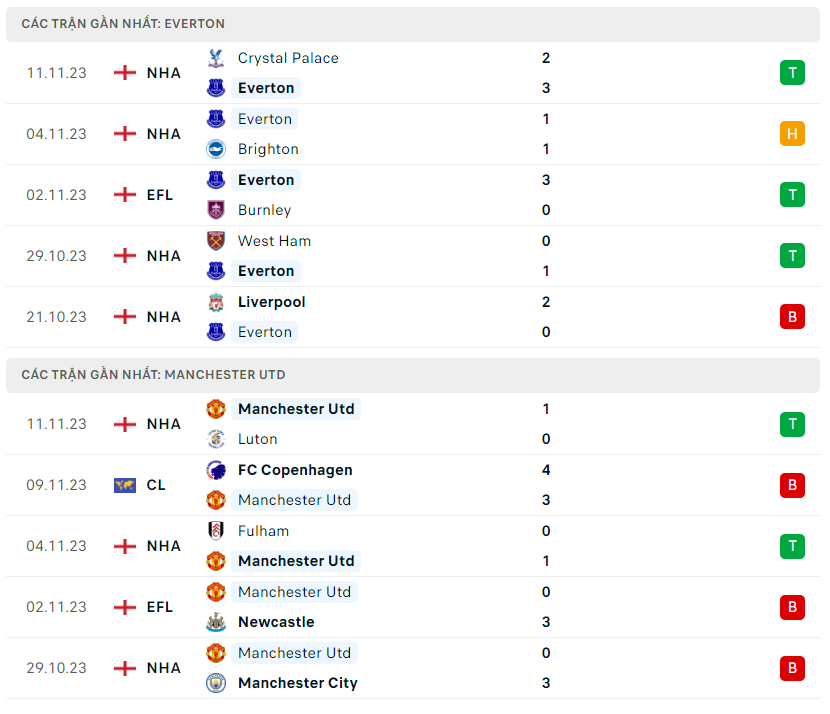 Everton chỉ thắng MU 1 trong 8 trận gần nhất hai đội gặp nhau ở Ngoại hạng Anh (hòa 4, thua 3).
