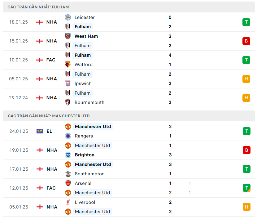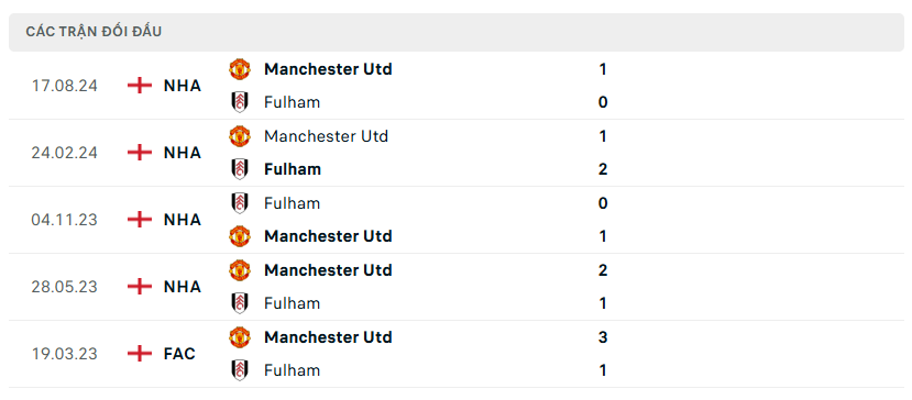 Lịch sử đối đầu, phong độ Fulham vs MU
