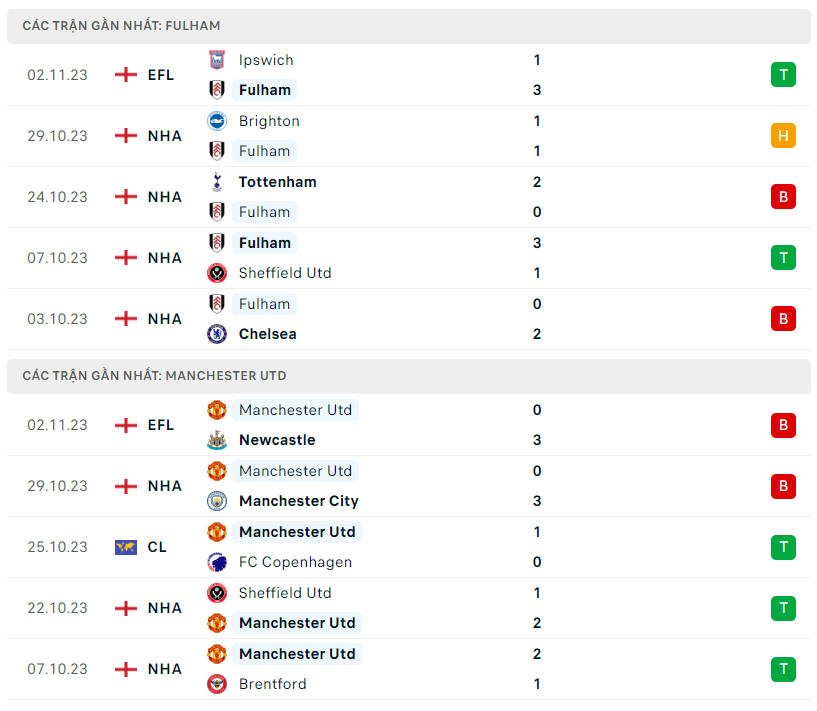 Lịch sử đối đầu, phong độ Fulham vs MU