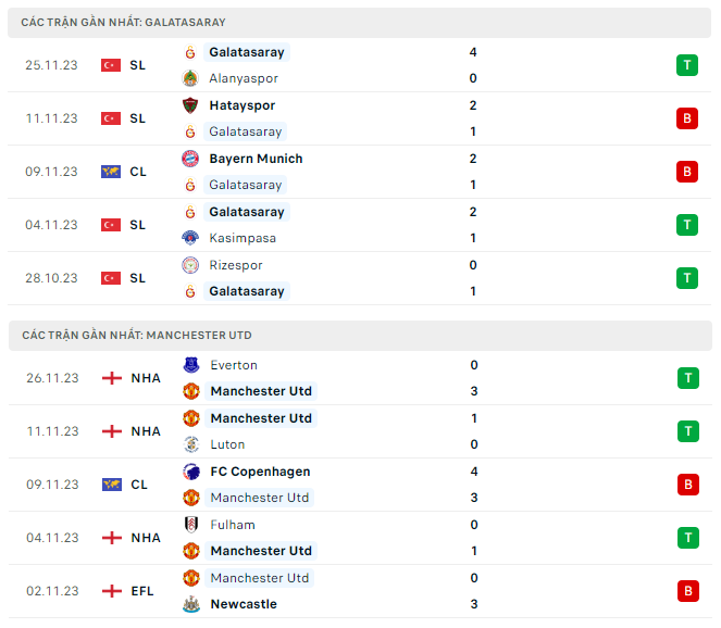 Phong độ, lịch sử đối đầu Galatasaray vs MU