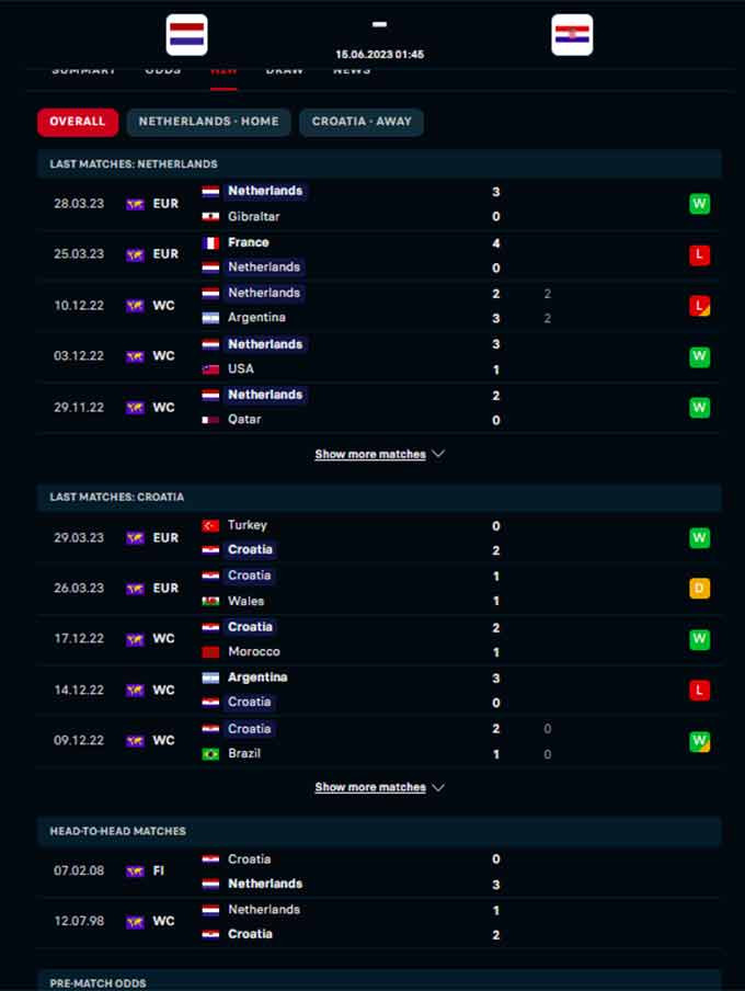 Phong độ, lịch sử đối đầu Hà Lan vs Croatia