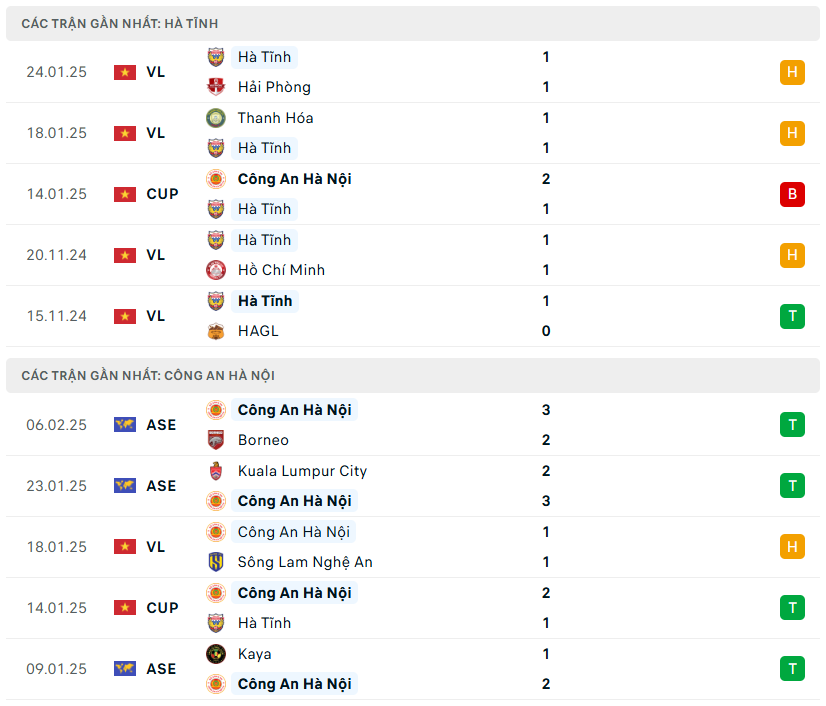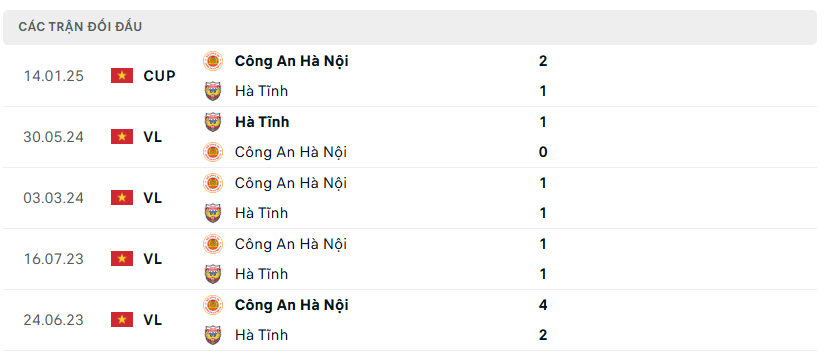 Lịch sử đối đầu, phong độ Hồng Lĩnh Hà Tĩnh vs Công an Hà Nội