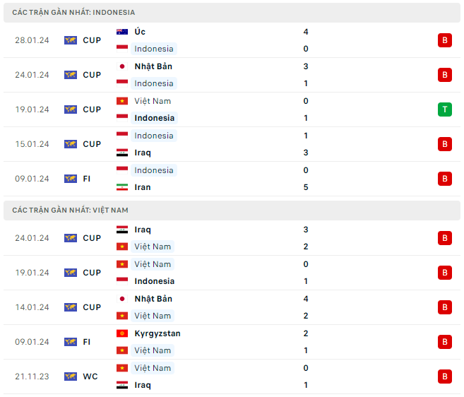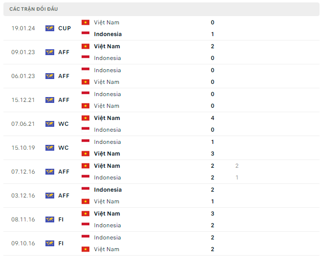 Đội tuyển Việt Nam đã trải qua 6 trận bất bại liên tiếp trước tuyển Indonesia trước khi thua trận đau đớn ở Asian Cup 2023 vừa qua. Trận thua đó không chỉ khiến chuỗi trận đối đầu ấn tượng của tuyển Việt Nam trước Indonesia bị chặn lại, mà còn khiến đội bóng của HLV Troussier bị loại sớm nhất giải đấu - chỉ sau 2 trận đấu.