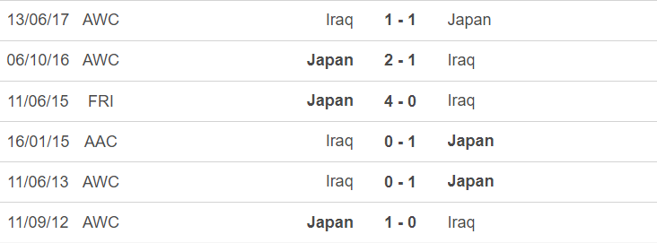 Điều này hoàn toàn nằm trong khả năng của các ngôi sao bên phía Nhật Bản. Theo thống kê lịch sử đối đầu giữa hai đội, Nhật Bản đang bất bại trong cả 6 lần đụng độ với Iraq. Trong đó, đội bóng số 1 châu Á giành đến 5 chiến thắng và ghi tổng cộng 10 bàn thắng. Trận thắng đậm nhất của Nhật Bản trước Iraq là chiến thắng 4-0 trong một trận đấu giao hữu. Các trận đấu trong giải chính thức giữa hai đội thường chỉ kết thúc với số bàn thắng tối thiểu.