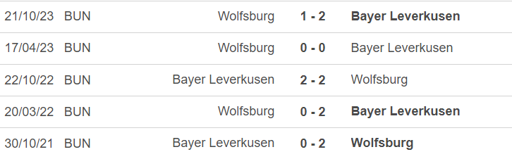 Phong độ, lịch sử đối đầu Leverkusen vs Wolfsburg