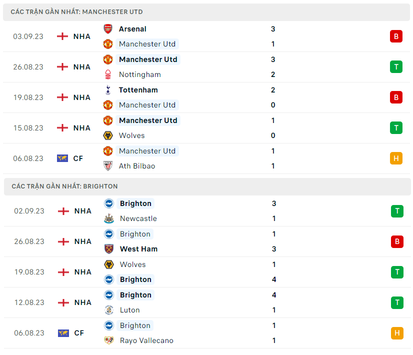 Mùa trước, Brighton chính là đội duy nhất đánh bại MU tại Old Trafford, ngay trong trận ra mắt của HLV Erik ten Hag ở Premier League. Cho dù đã thay HLV từ Graham Potter sang De Zerbi, đồng thời chia tay một số ngôi quan trọng như Caicedo, Mac Allister nhưng Brighton không hề suy yếu. Ngược lại, họ càng chơi càng hay và thường xuyên giành chiến thắng với lối chơi tấn công mãn nhãn.