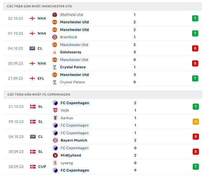 Phong độ, lịch sử đối đầu MU vs Copenhagen