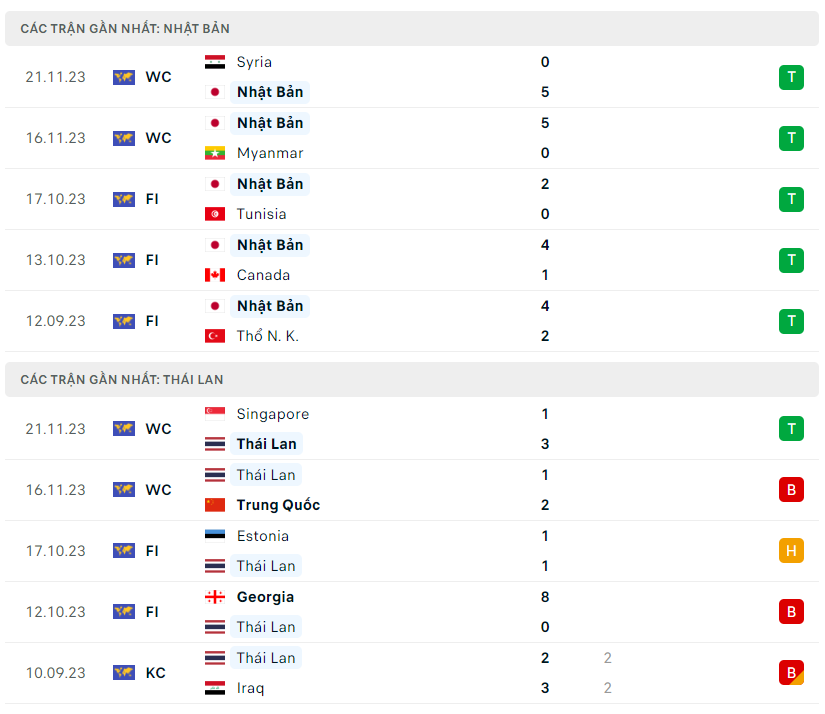 Lịch sử đối đầu, phong độ Nhật Bản vs Thái Lan