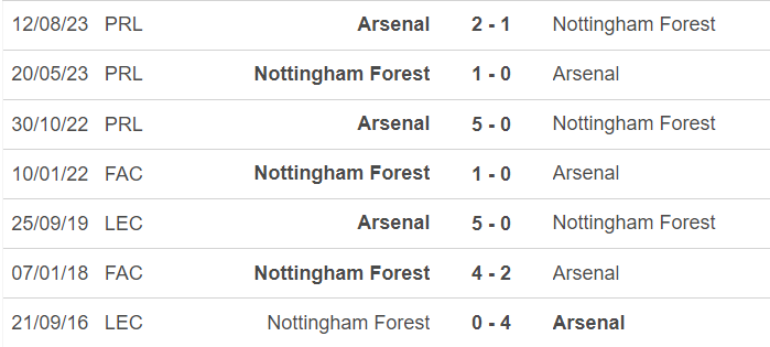 Phong độ, lịch sử đối đầu Nottingham vs Arsenal