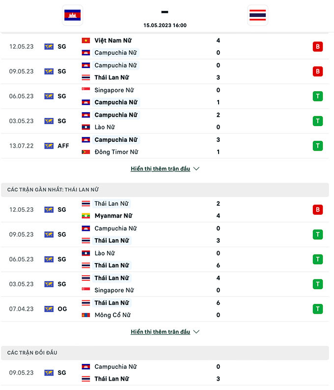 Phong độ, thành tích đối đầu nữ Campuchia vs nữ Thái Lan