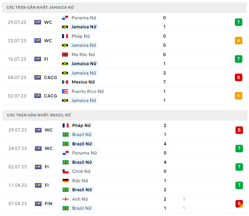 Phong độ, lịch sử đối đầu nữ Jamaica vs nữ Brazil