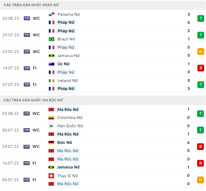 Phong độ, lịch sử đối đầu nữ Pháp vs nữ Morocco