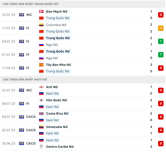 Phong độ, lịch sử đối đầu nữ Trung Quốc vs nữ Haiti