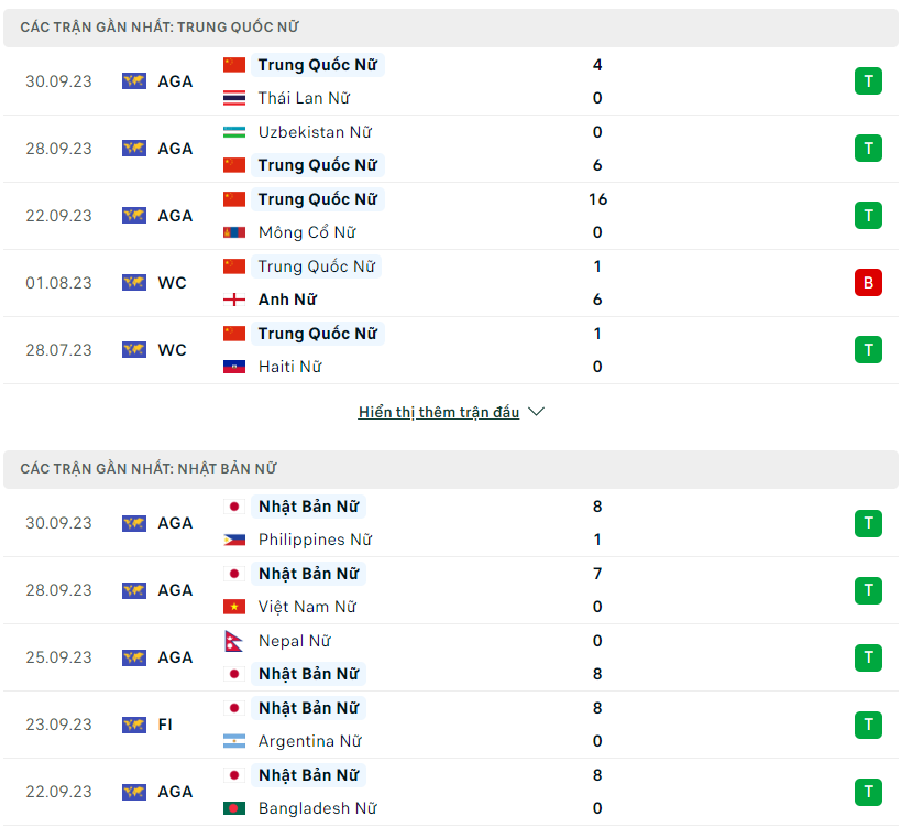 Thông tin lực lượng nữ Trung Quốc vs nữ Nhật Bản