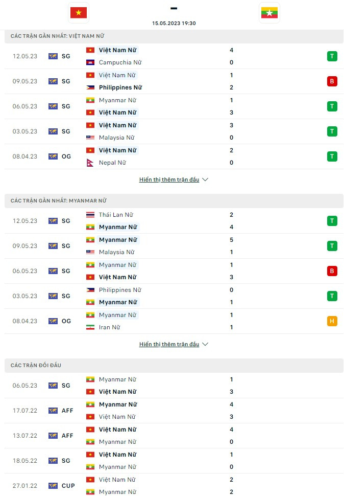 Phong độ, lịch sử đối đầu Nữ Việt Nam vs Nữ Myanmar