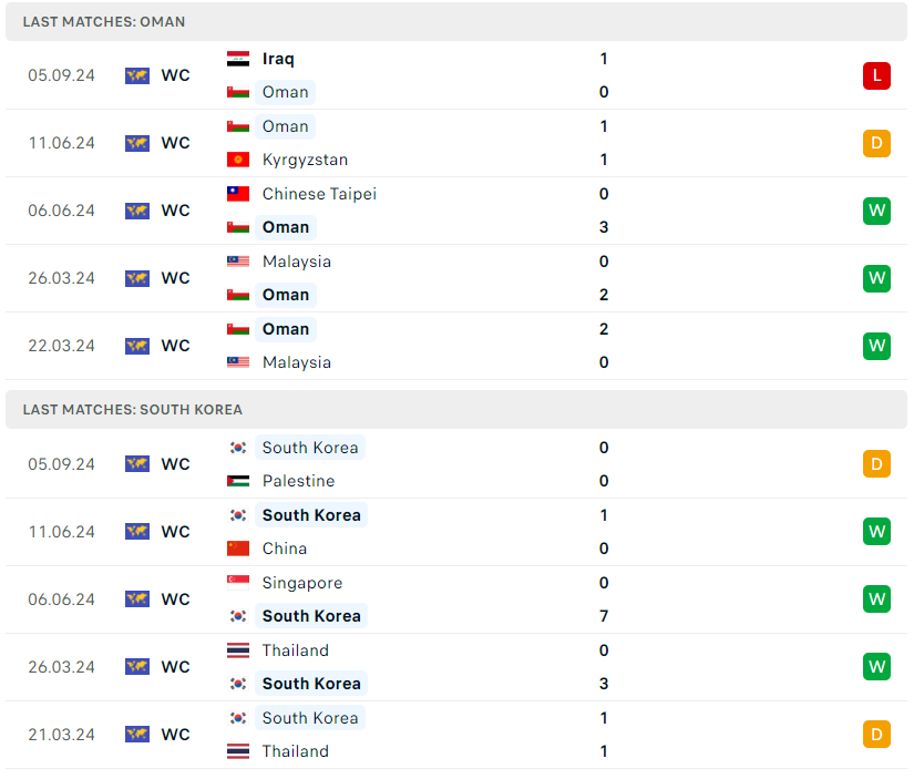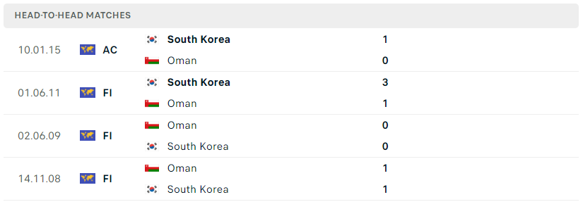 Lịch sử đối đầu, phong độ Oman vs Hàn Quốc