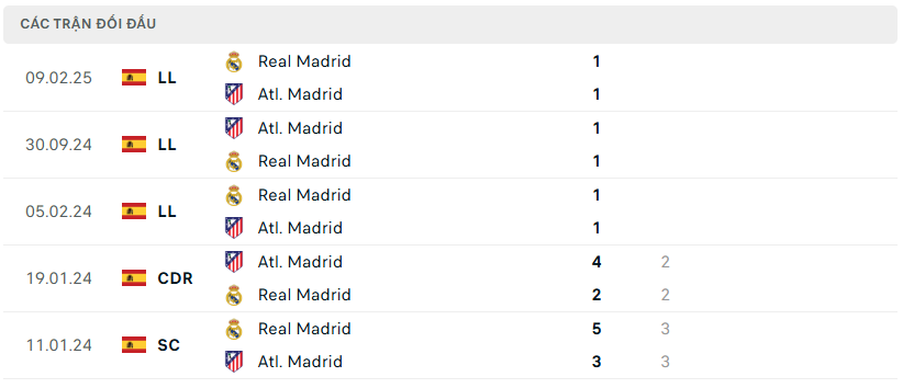 Dù vậy, Real Madrid vẫn cần chắt chiu cơ hội nếu muốn đánh bại Atletico Madrid. Cho dù áp đảo ở đấu trường châu lục, nhưng Los Blancos lại thường xuyên gặp khó trước đối thủ cùng thành phố ở giải quốc nội. Ít ai ngờ lần gần nhất Real thắng Atletico đã diễn ra từ năm 2022. Trong vòng 3 năm qua, hai đội đã gặp nhau 8 lần nhưng Real không một lần thắng trong 90 phút (hòa 7, thua 1).