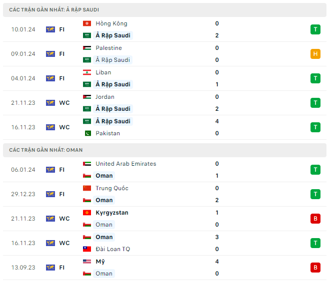 Phong độ, lịch sử đối đầu Saudi Arabia vs Oman