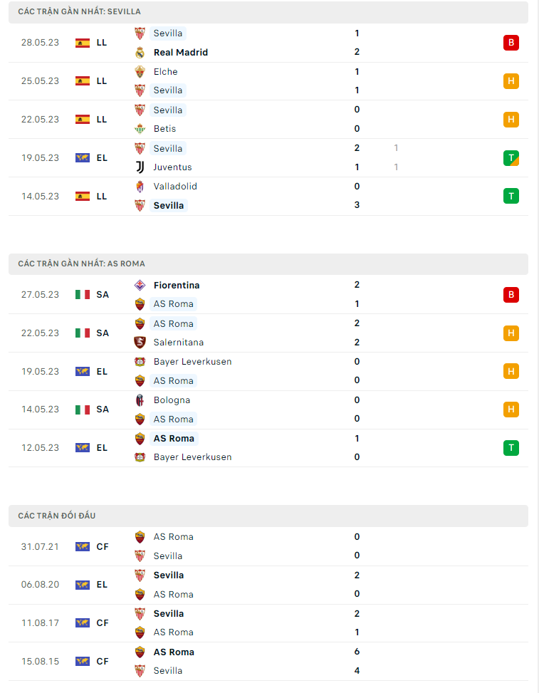 Phong độ, lịch sử đối đầu Sevilla vs Roma