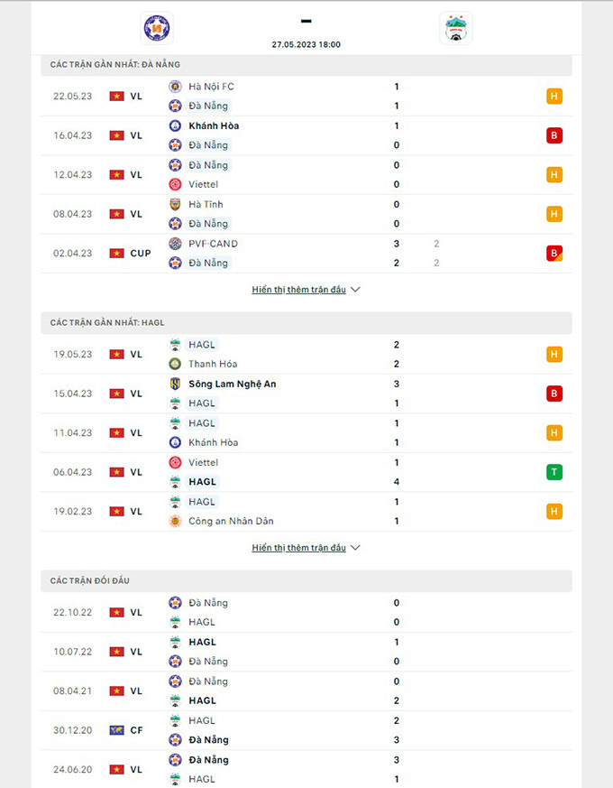 Phong độ, lịch sử đối đầu SHB Đà Nẵng vs HAGL