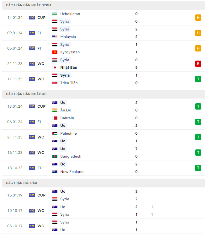Phong độ, lịch sử đối đầu Syria vs Australia
