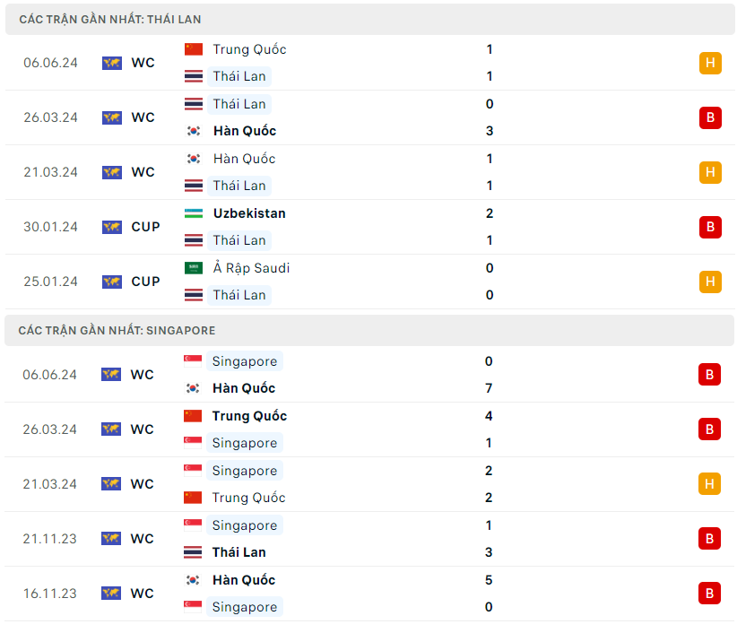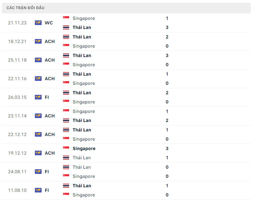 Phong độ, lịch sử đối đầu Thái Lan vs Singapore