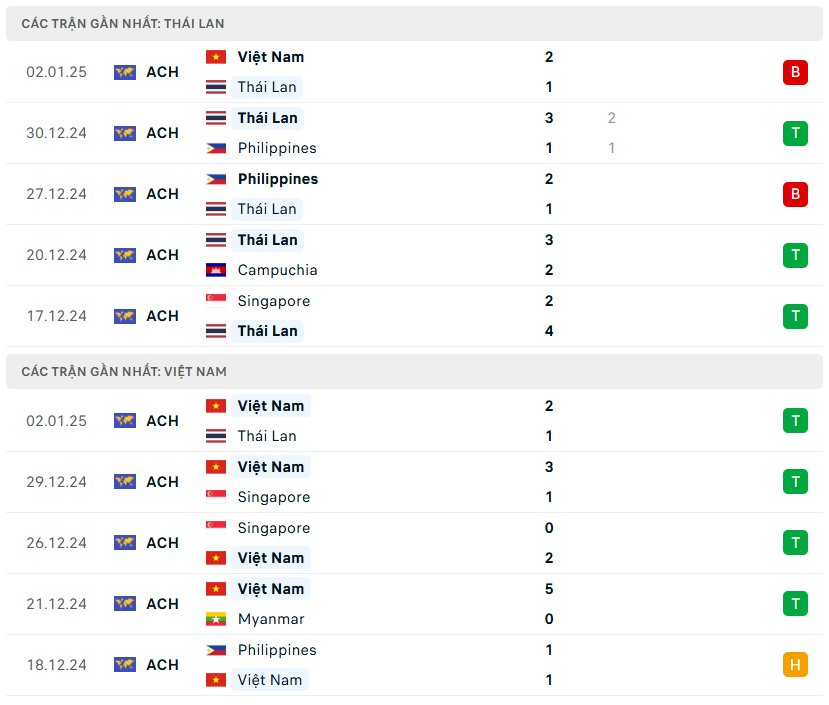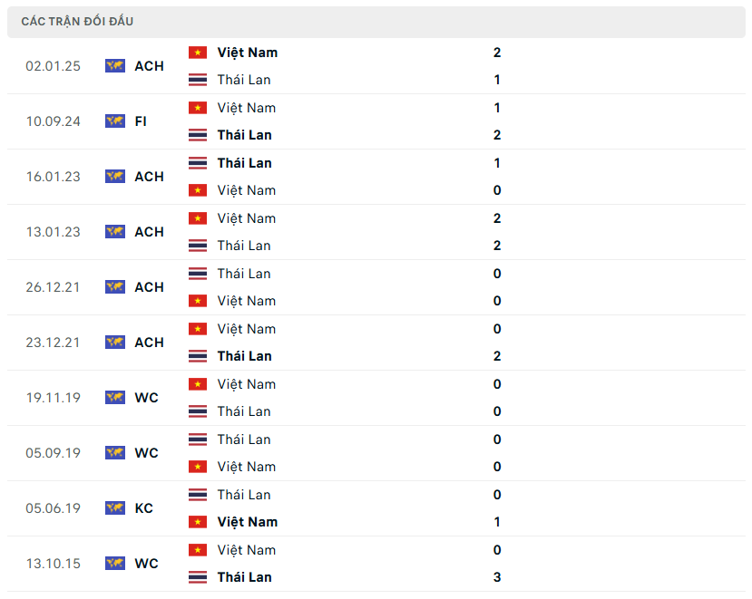 Lịch sử đối đầu, phong độ Thái Lan vs Việt Nam