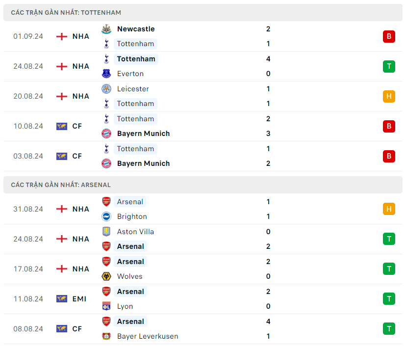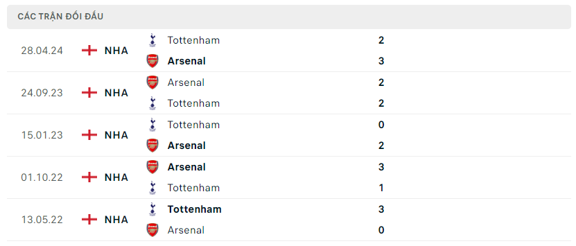 Lịch sử đối đầu, phong độ Tottenham vs Arsenal