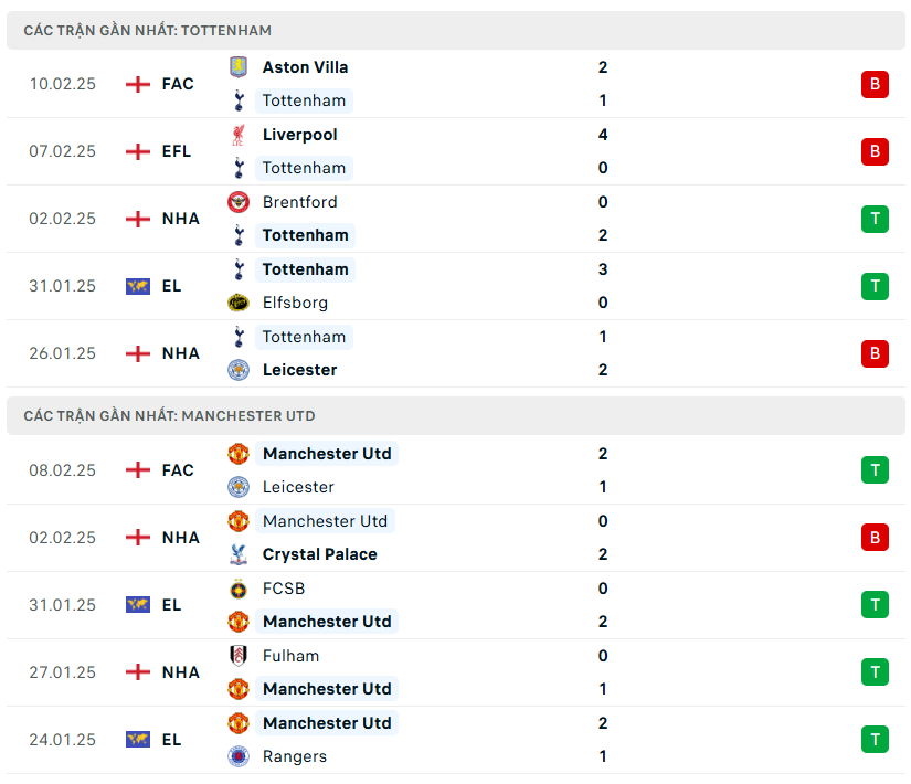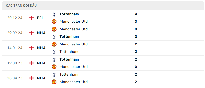 Lịch sử đối đầu, phong độ Tottenham vs MU