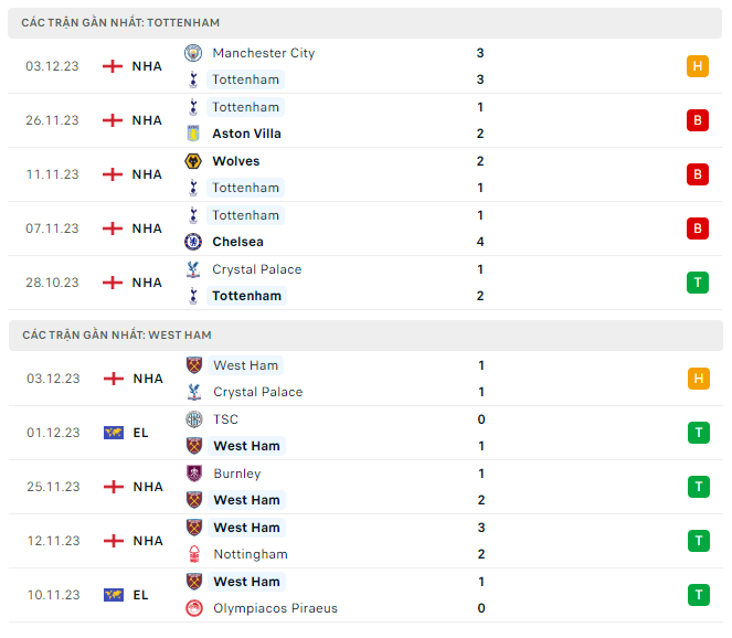 Phong độ, lịch sử đối đầu Tottenham vs West Ham